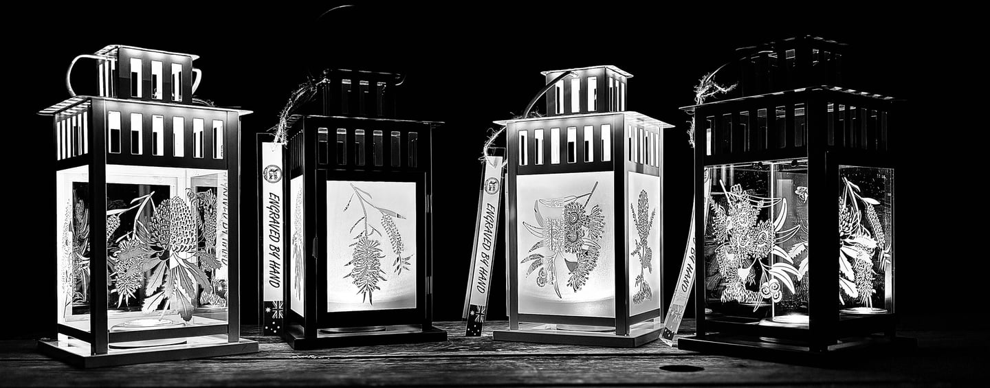 We are providing the opportunity to have your child's artwork engraved onto lanterns. This beautiful illumination will become a cherished treasure forever. Black and white lanterns available, 28cm tall, puck light included. Minimum cost $30 with one side engraved then $10 for each extra side. Contact Studio Clinq for further information. sandra@studioclinq.com.au