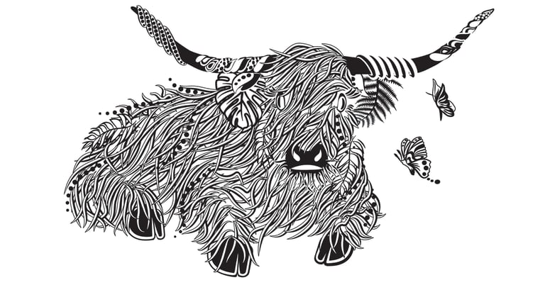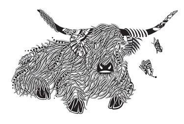 This highland cattle illustration required considerable time to perfect the line weights. Sometimes, what appears appealing on paper does not translate well onto glass.