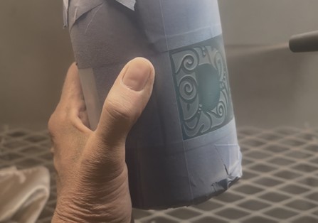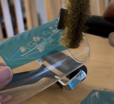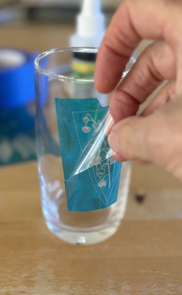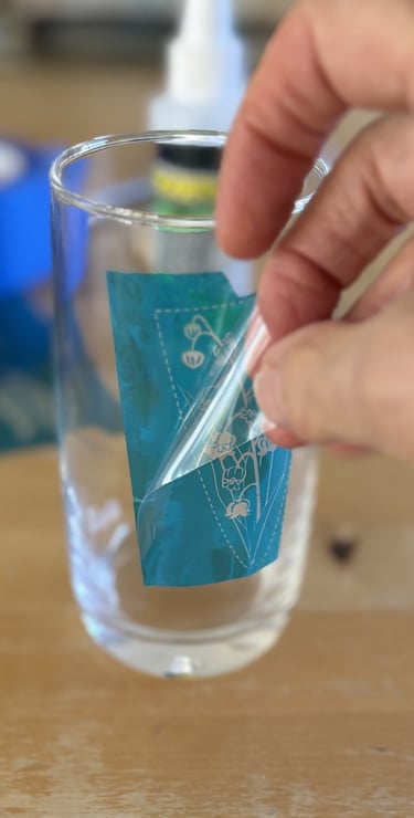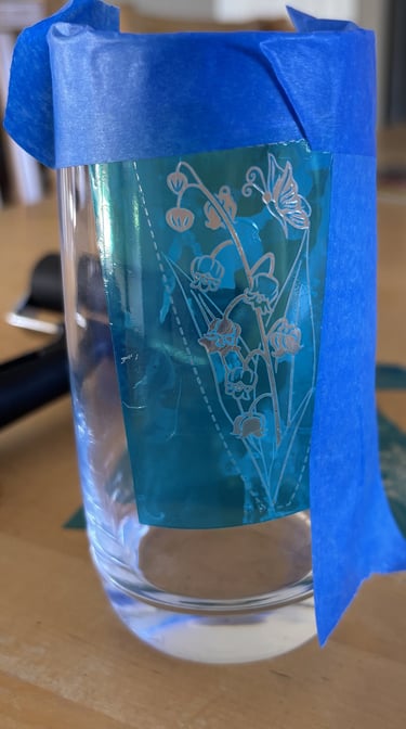 Once dried, the mask is tacky and is ready to be applied to the glass surface.