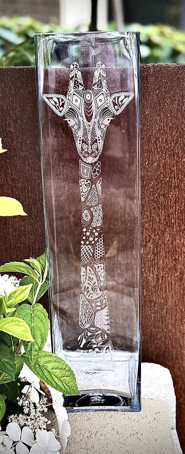 Sandcarving on glass is a meticulous craft that requires considerable time and precision, especially when following the above-mentioned multi-stepped protocol. While laser techniques may offer a quicker solution, they often lack the unique and special aesthetic that traditional sandcarving provides. I can sandblast a wide variety of shapes and sizes, accommodating pieces up to 80cm. It is undeniably time-consuming, but the satisfaction derived from creating beautiful, custom glass art is immensely rewarding. The process involves careful planning and execution, ensuring that every detail is captured in the final piece.